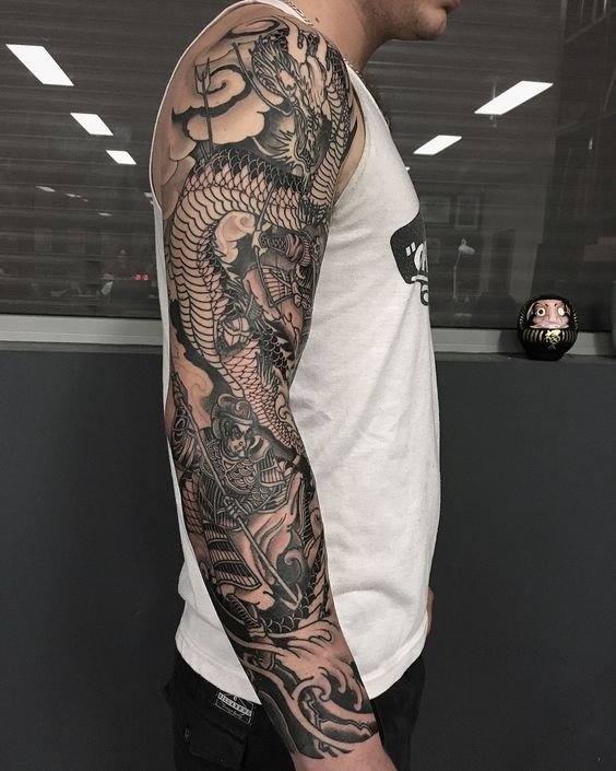 De eigenschap van de tattoo sleeve voor hele arm is een geheel tekening van schouder tot pols.
