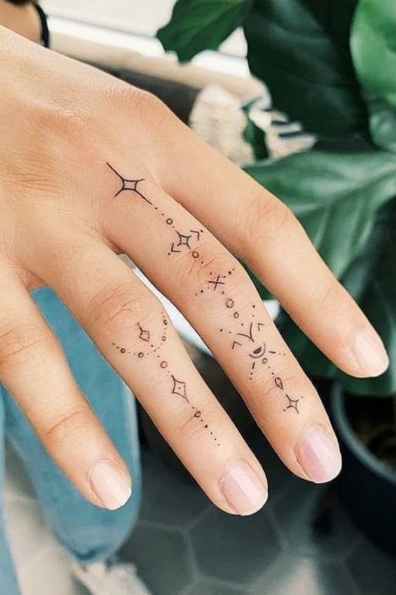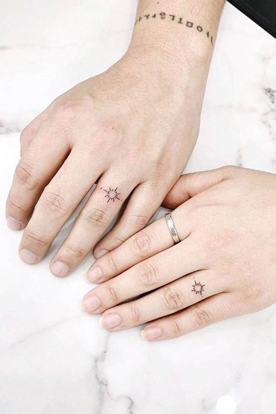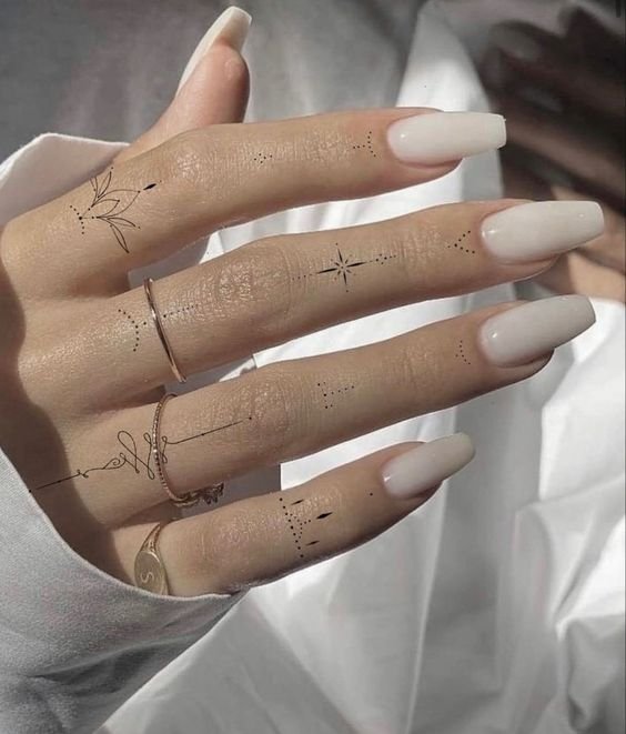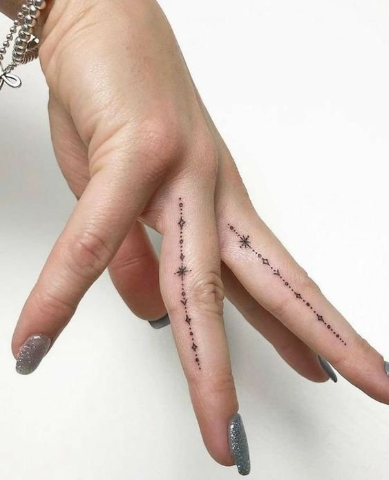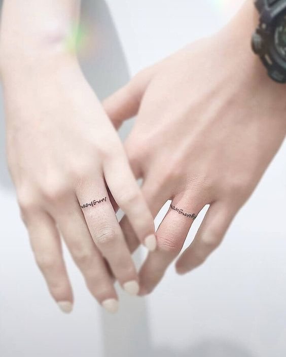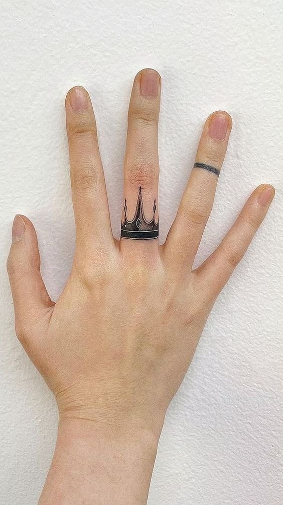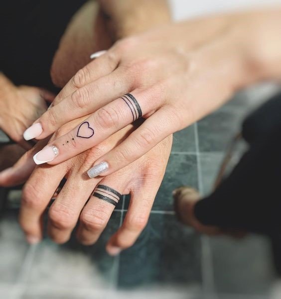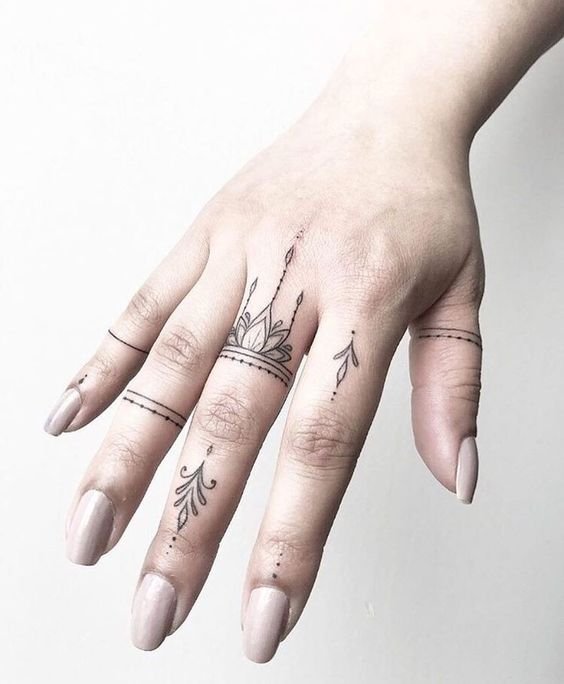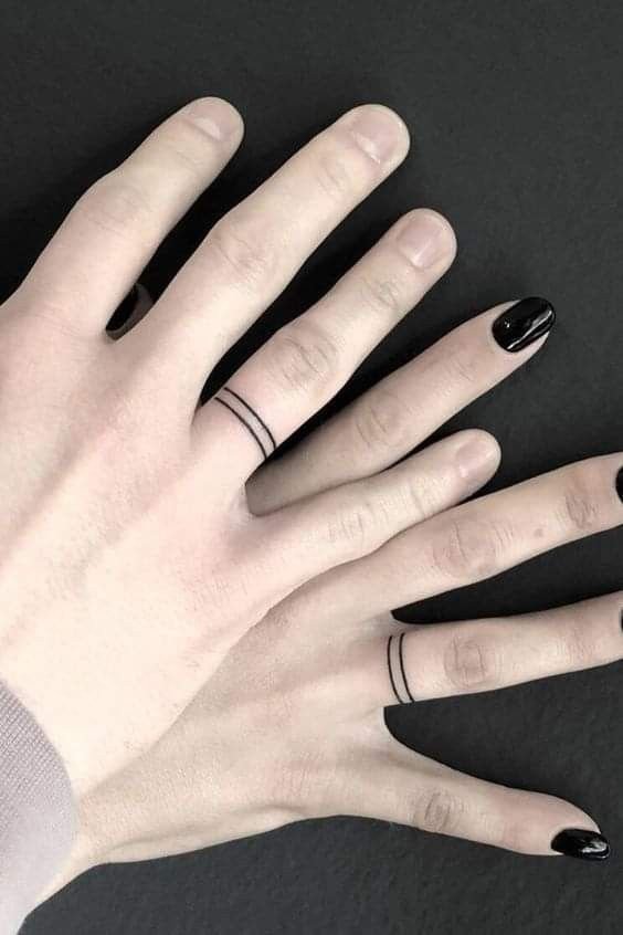 Een van de meest gebruikelijke ideeën specifiek voor de tattoo's op de vinger is de afbeelding van een symbolische ring op een ringvinger, die door velen gebruikt wordt als een permanent alternatief (of aanvulling) op traditionele ringen.