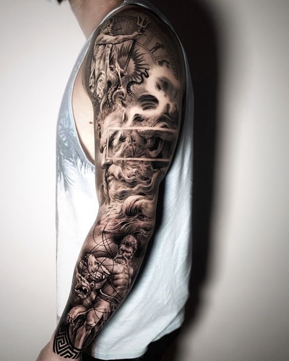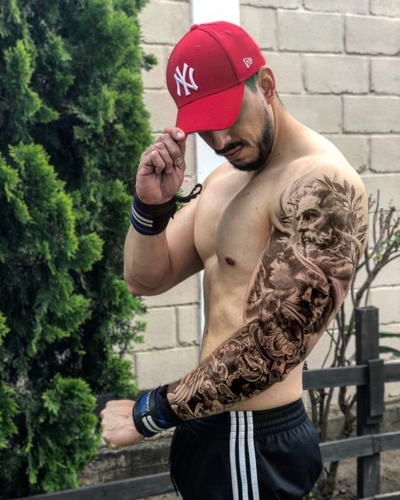 The sleeve tattoo is very difficult to do. You should have sufficient endurance and pain threshold to choose it. The time to complete the tat can last up to a year. It depends on how arm would heal. In addition, inking even a part of the tattoo is divided into several sessions in one day. To get a high-quality tattoo, you need to choose the artist who can consult you before starting work, and then, if necessary, make an adjustment. Depending on the size of the applied pattern, the men’s tattoo sleeve is divided into several types: