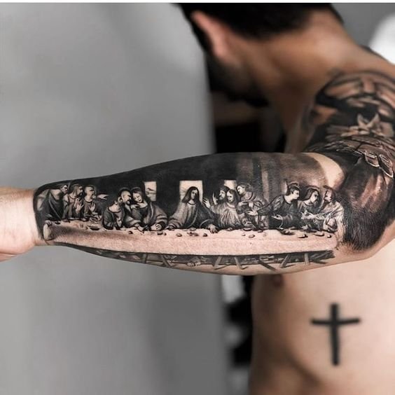 The drawing up to the elbow is not bulky; it is easier to choose a composition here. Half of the arm has less space for tattooing, so individual figures are often small. Such a project is not long-term.