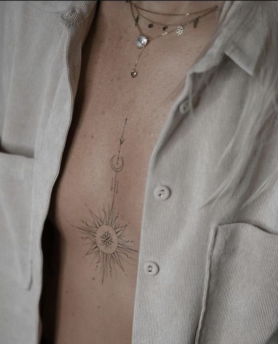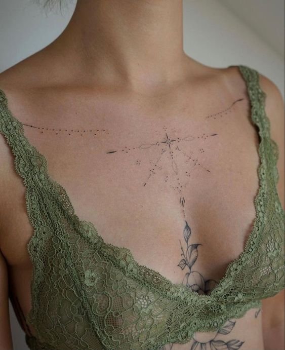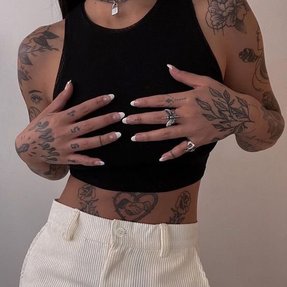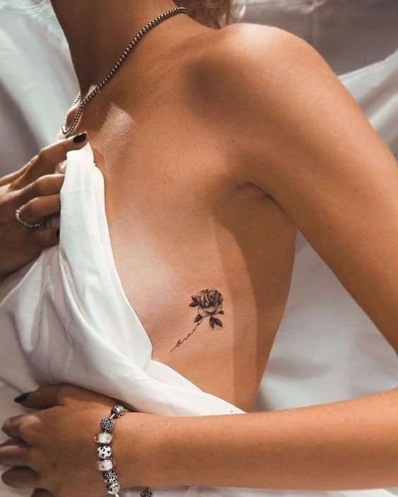 Small tattoos also look good on the collarbone and neck area. Tattoos behind the ear in the form of patterns look original and make you stand out. A lot of ideas for underbust images: mandalas, floral patterns, geometry. They are not visible under clothes, but allow a woman to feel more confident and sexy. Tattoos on the abdomen, ribs and thighs emphasize the beautiful forms of the girl.