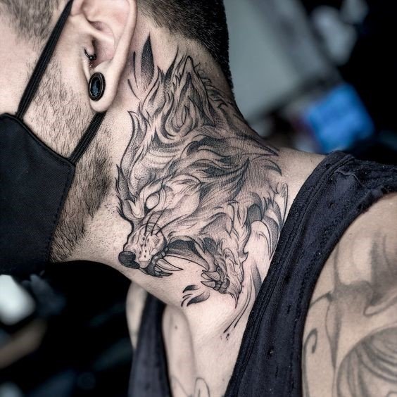 The neck tattoo with this wild beast refers to the original instincts, masculinity, as well as ideas of materialism.