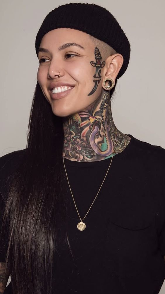 The face tattoo has a long history that goes back to tribal communities where the application of symbols on the face had a deep sacred or status meaning.
