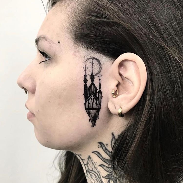 On the cheek / under the eye - small symbols with a deep meaning - under the eyes often apply small simple images (tear, crown, diamond, heart, etc.) - Temple tattoos (can be symmetrical on both sides) look very effective, but because this area of the face is sensitive enough, it is rarely chosen for tattoo.
