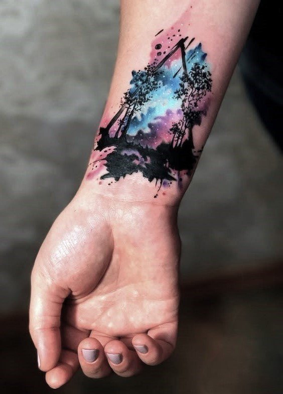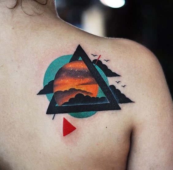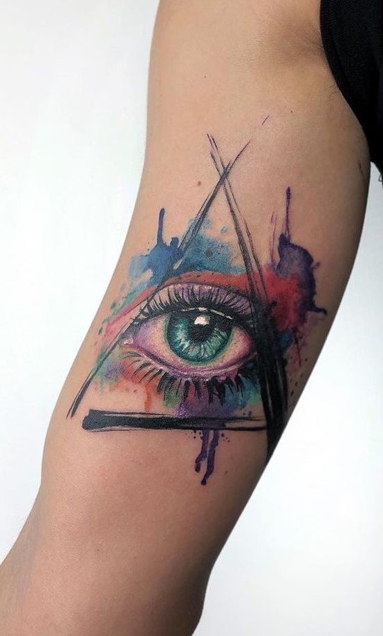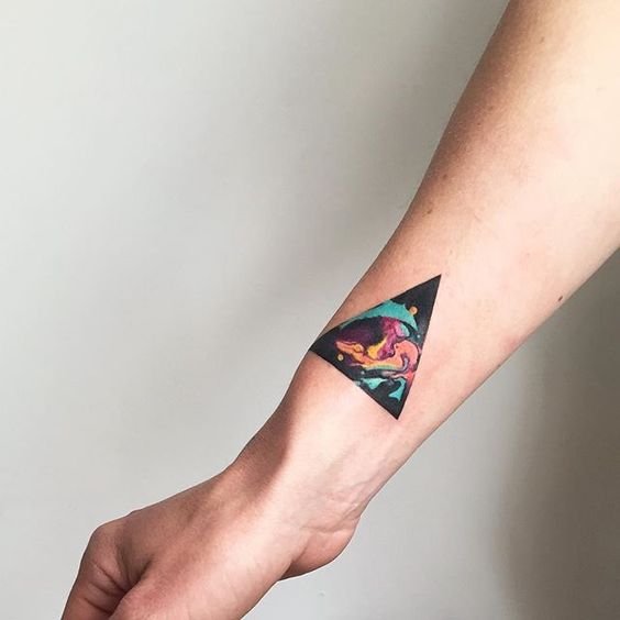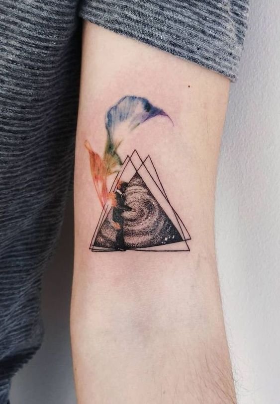 - Watercolor style: Adding vibrant watercolor shades to the triangle gives the tattoo a lively and artistic touch, making it unique and expressive.