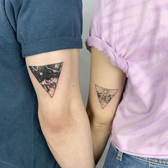 - Triangle with natural elements: Add images of mountains, trees, or waves to the triangle to create a deeper, scenic design that reflects your love of nature.