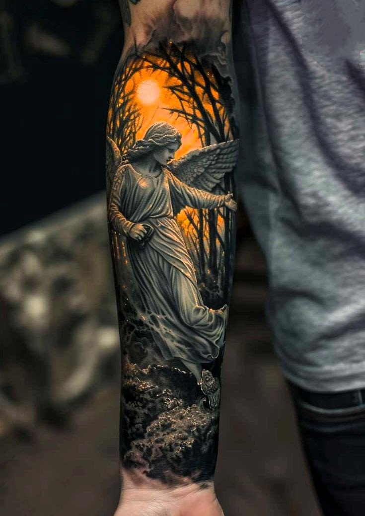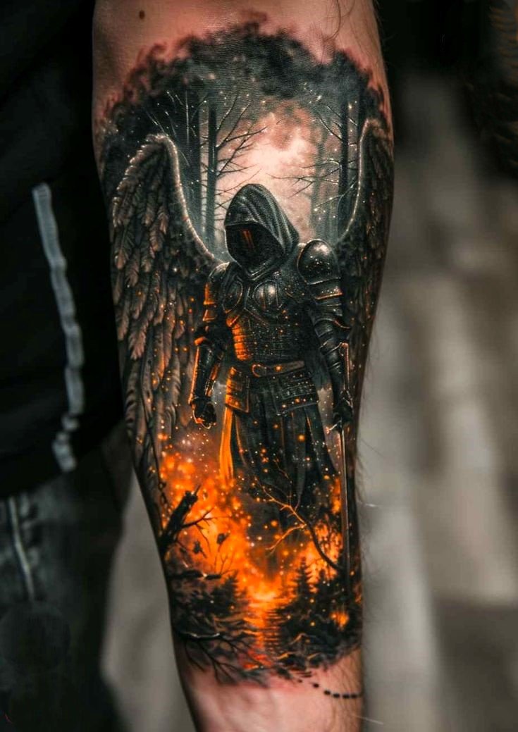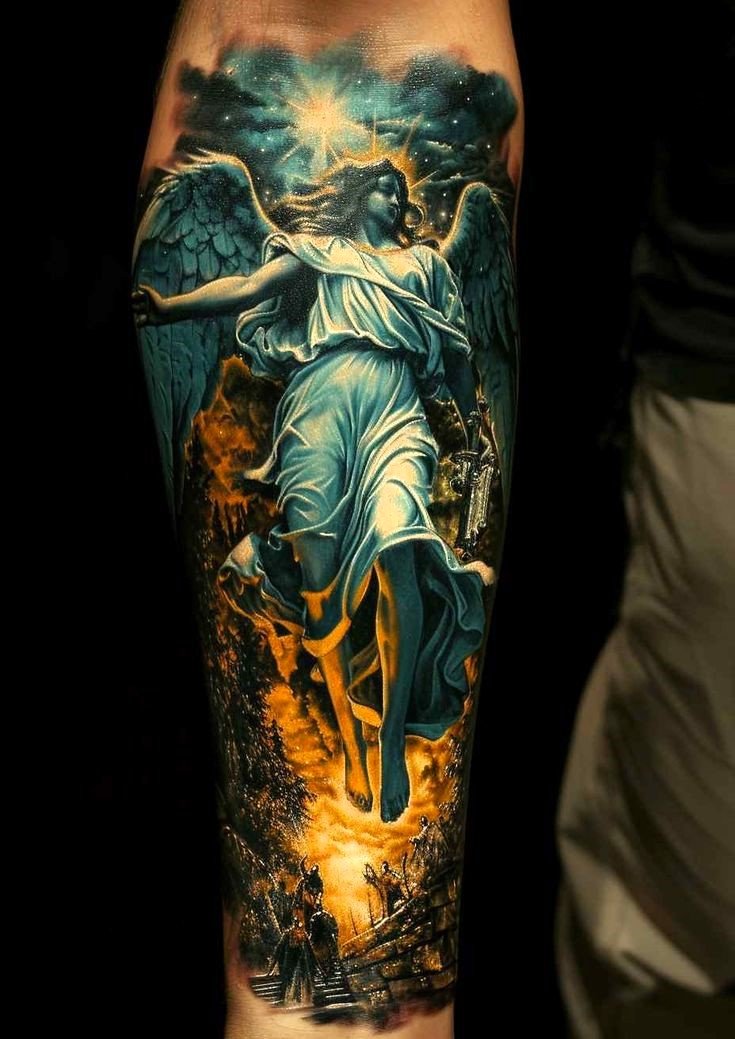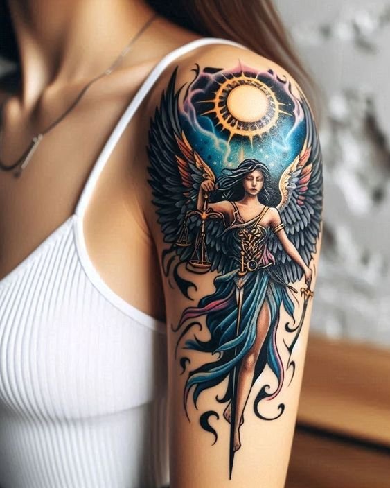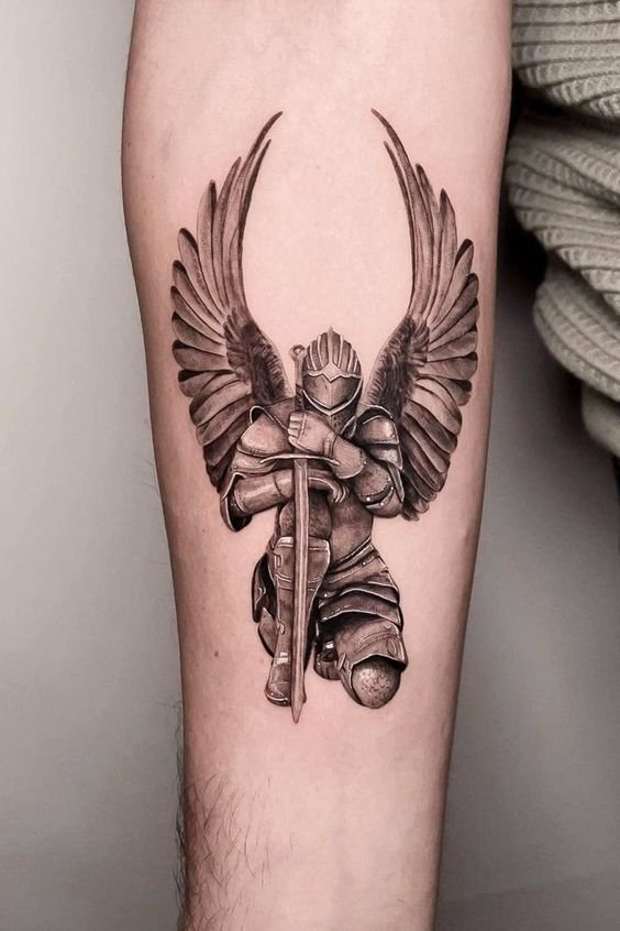 A tattoo can mean fearlessness and defeating enemies. Traditionally, the Archangel Michael personifies the ability to withstand adversity and overcome life’s difficulties. It’s synonymous with being determined and able to stand up for yourself in battle.