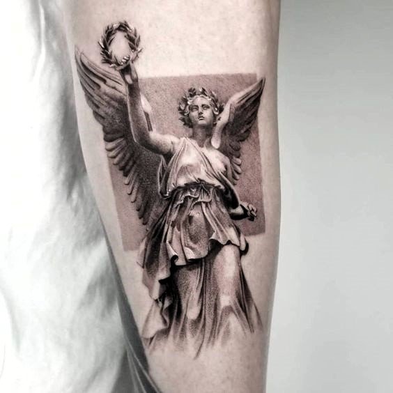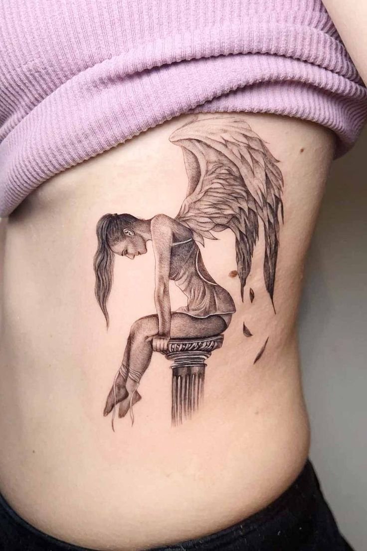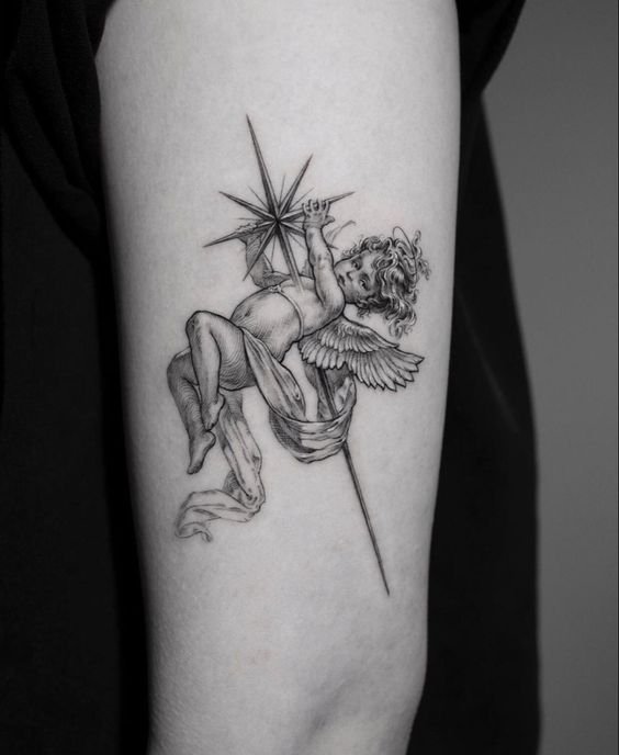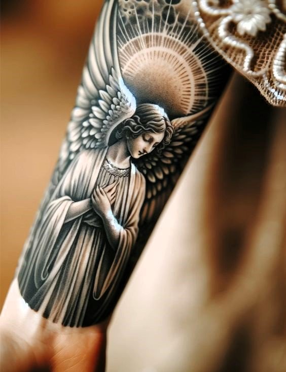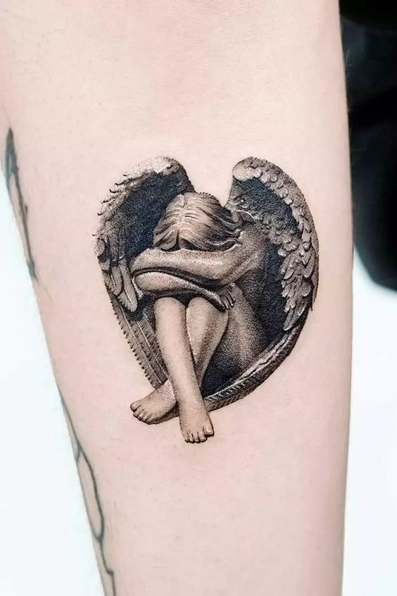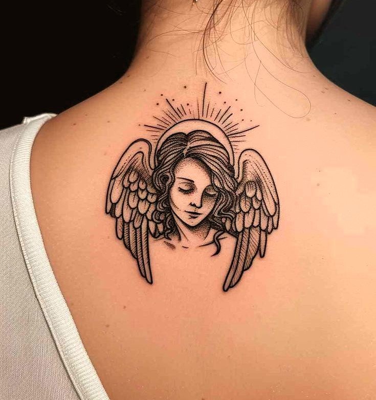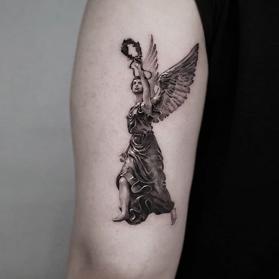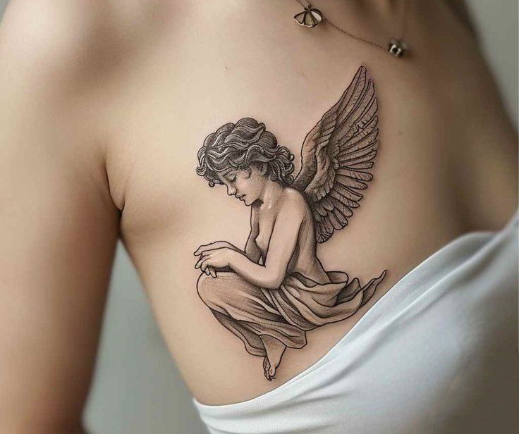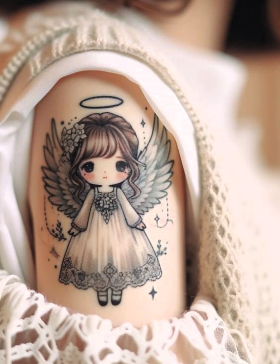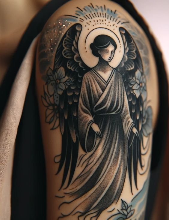 Angel tattoos are often placed on the shoulder, which is related to the idea of the location of the guardian angel.