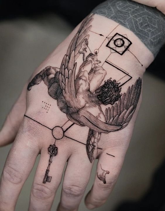 The meaning of the tattoo is related to the ideas about the divine origin of the Angel and its role in people’s lives.