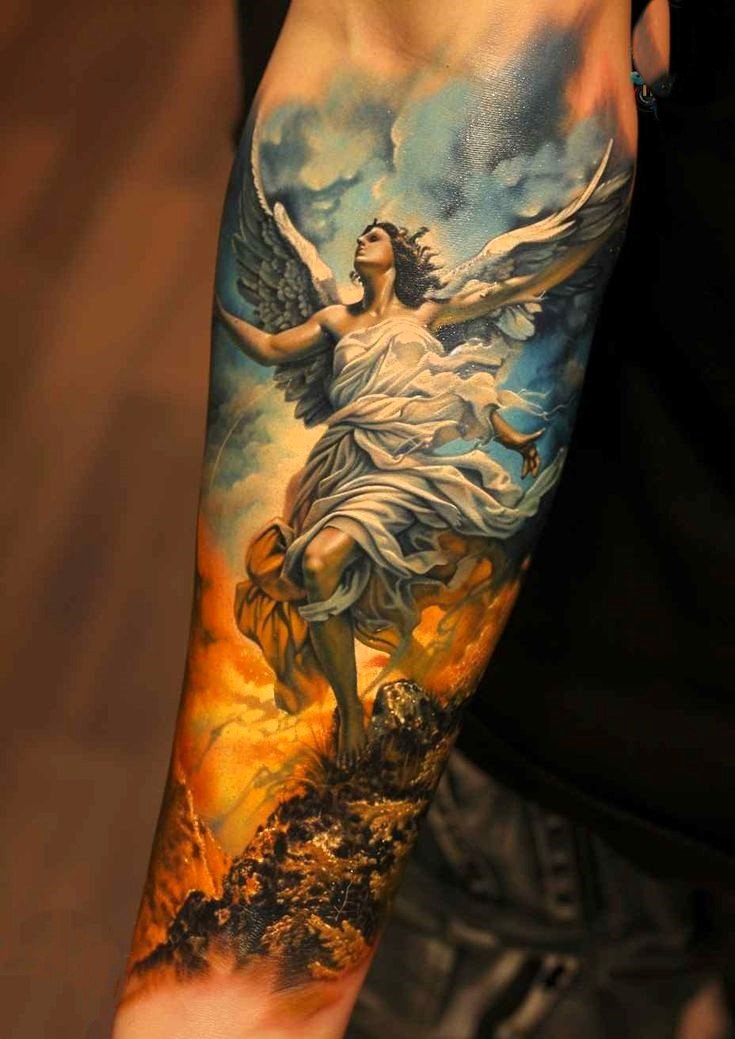Tattoos are presented in different forms and designs. Traditionally, angels represent the relationship between heaven and earth. They are the messengers of the Gods, guiding and protecting the earth’s inhabitants.