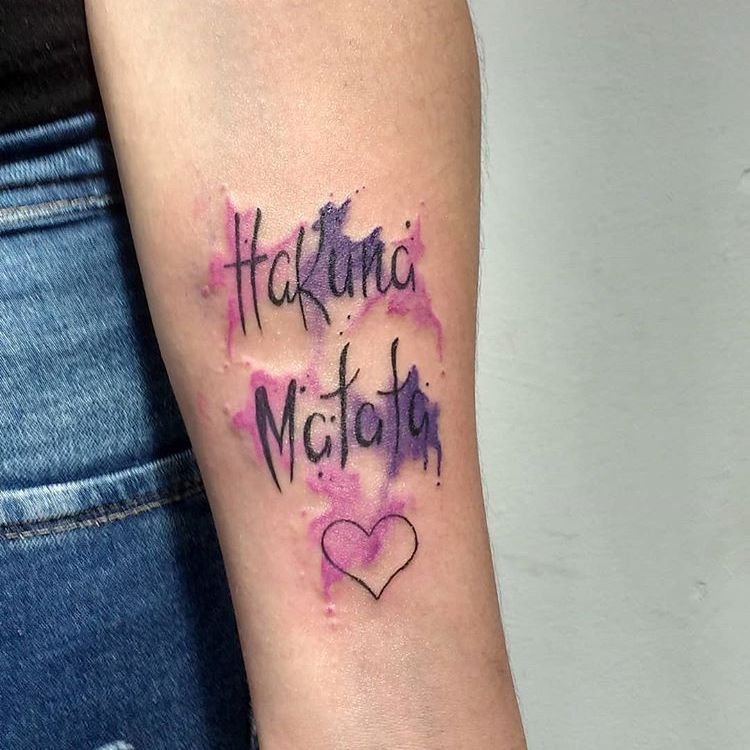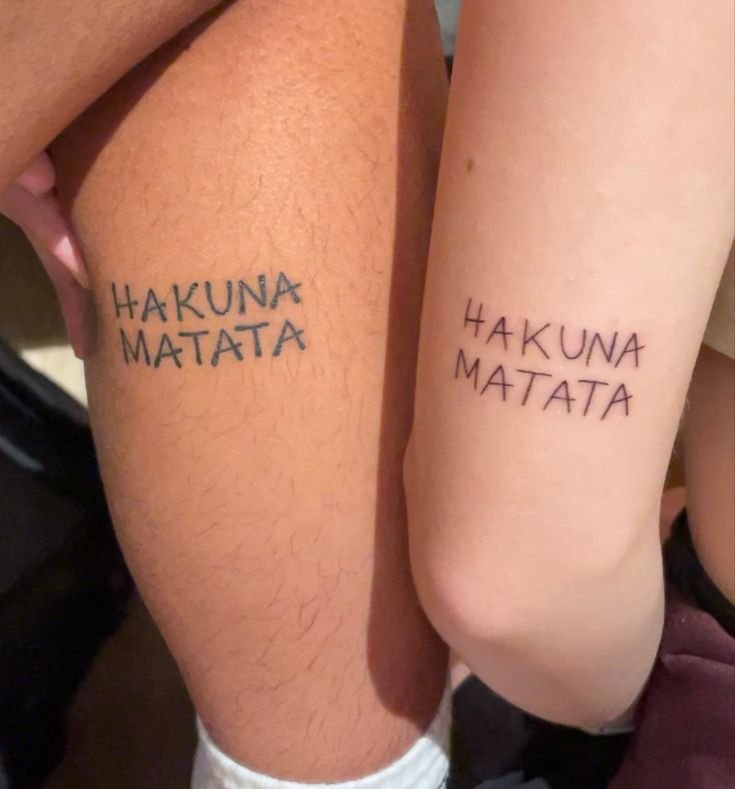 - This phrase has become a symbol of lightness and joy, which are often missing in everyday life. A “Hakuna Matata” tattoo on the body is a commitment to a positive outlook, seeking joy and lightness even in ordinary things. This tattoo is for those who want to share warmth and kindness with the world.