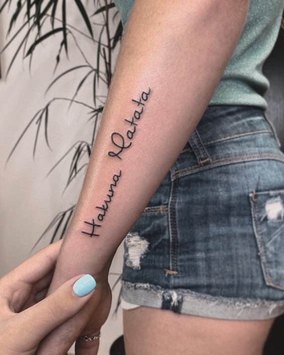 - The meaning of “Hakuna Matata” lies in the ability to live without unnecessary worries. This phrase teaches us to let go of negative thoughts, not dwell on the past, and not allow anxiety to impact the present. A tattoo with this phrase is ideal for those who want a reminder of the importance of lightness and the ability to find joy in every moment.