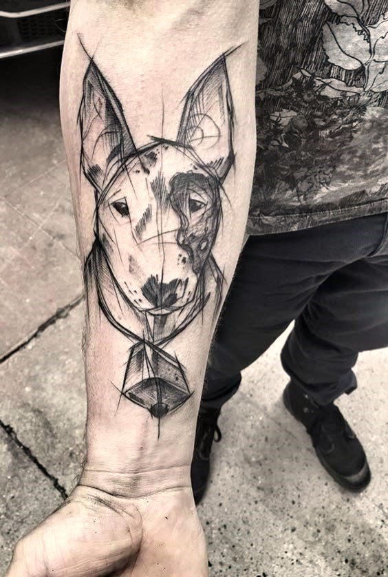 - Cartoon-style dog: A caricature or cartoon-like drawing of your dog adds a playful and cheerful touch to the tattoo. This style is perfect for those who want to bring a little humor to their design.