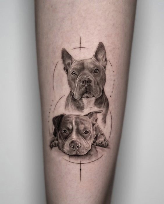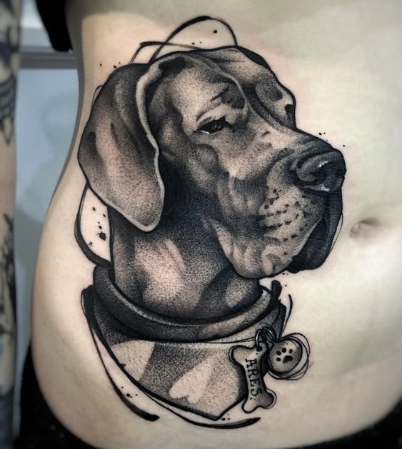 A dog tattoo is not just an image of a beloved pet, but also a symbol of loyalty, devotion, and friendship.