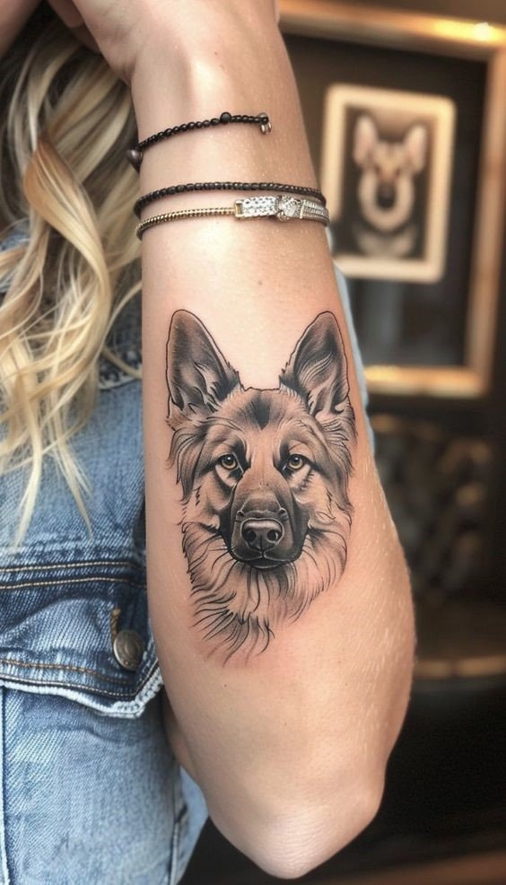- German Shepherd: Represents courage, loyalty, and protection. A tattoo of a German Shepherd is perfect for those who value discipline and are ready to stand guard over their loved ones.