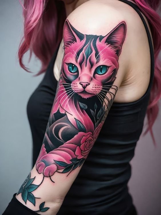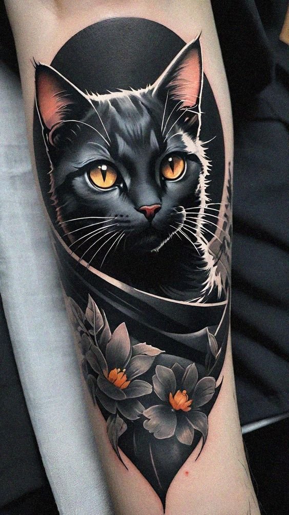 An unlimited number of sketches add to the popularity of Cat tattoo.