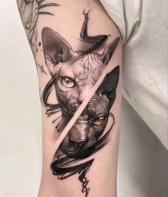 The ancient Egyptian goddess of fun, joy and love Bast was depicted with the head of a lioness and the body of a domestic cat. In this context, the tattoo symbolizes a successful romantic relationship, fertility and female beauty.