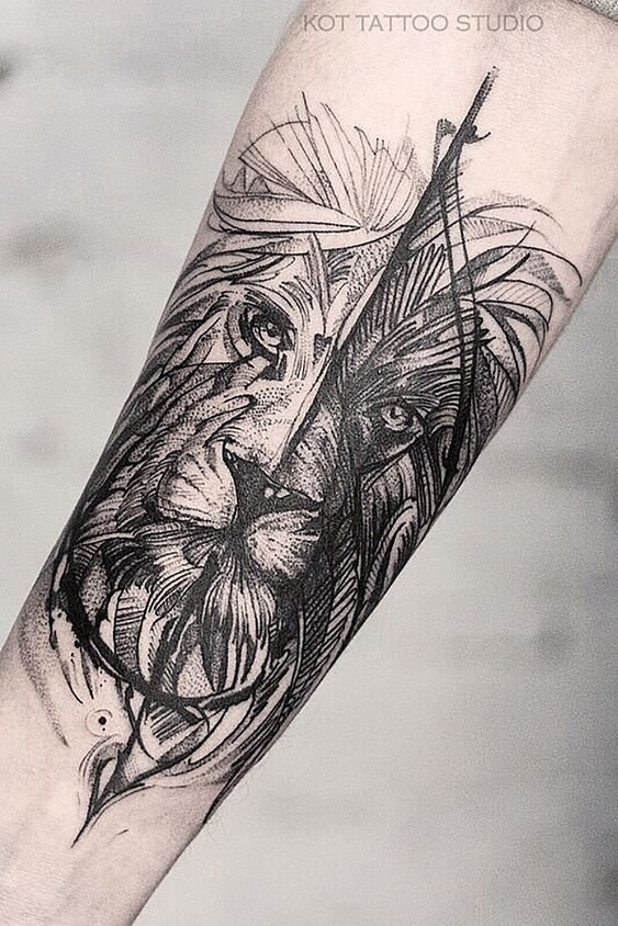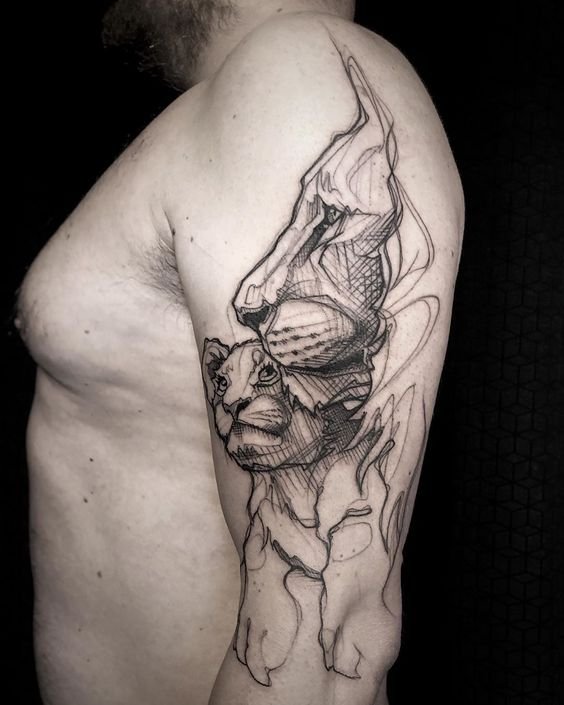 The body image of the animal serves as a powerful charm that protects from enemies and troubles. According to Chinese tradition, a lion tattoo brings luck and happiness. Many people choose a lion sketch tattoo to remember that survives the strongest.
