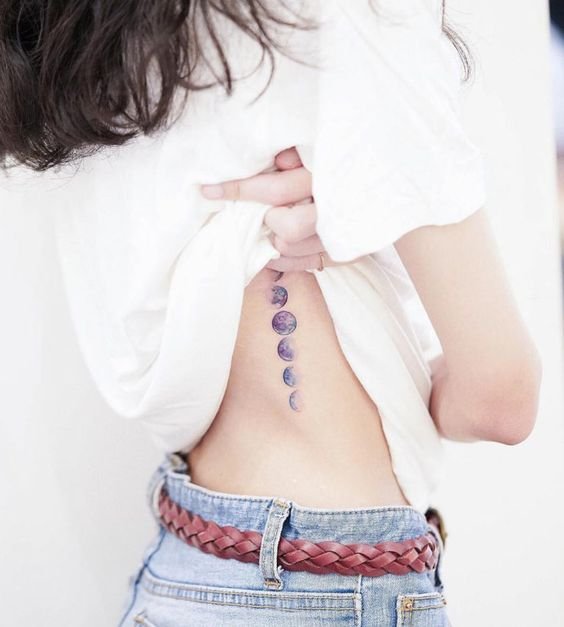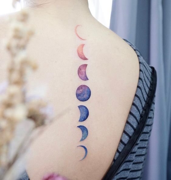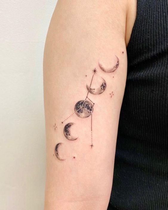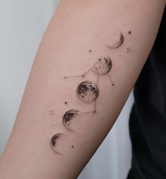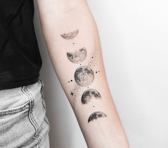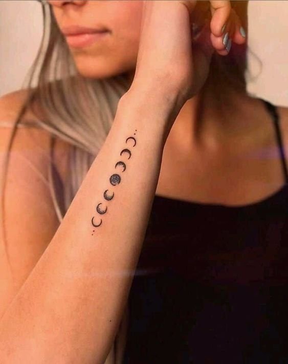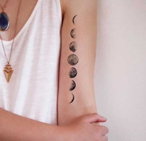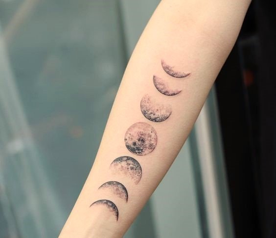 One of the most popular designs is the depiction of all the moon's phases, from new moon to full moon. This tattoo symbolizes life’s continuous cycle, growth, and change. This design is often done in a minimalist style, using simple outlines or geometric shapes, highlighting its elegance and order. - Full Moon
