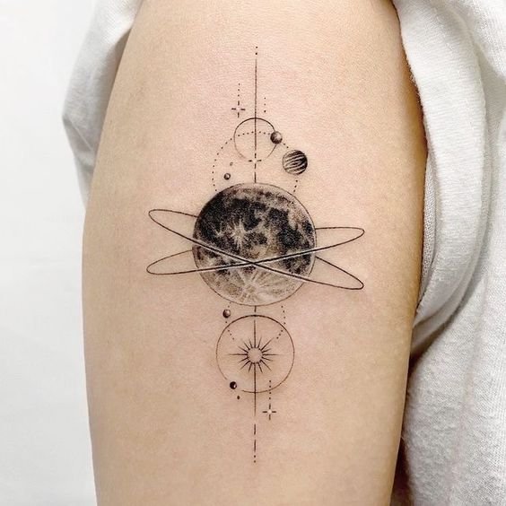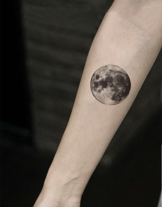 The full moon is associated with a culmination of energy, peak strength, and the achievement of goals. A tattoo of a full moon can symbolize a high point of success or a moment of maximum clarity and understanding in life. A realistic style, with detailed craters and shadows, adds depth and dimension to the tattoo.