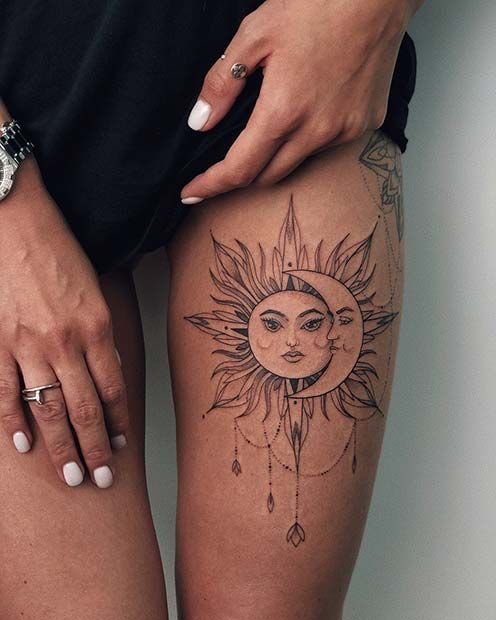 The moon is often associated with femininity and motherhood. In ancient cultures, it symbolized goddesses and feminine power. A moon tattoo can represent femininity, care, and protection. - Darkness and Light