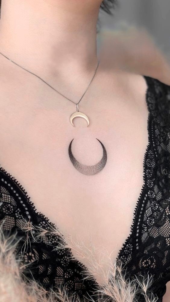 - Neck and collarbone: ideal for more elegant, compact tattoos, especially crescent moons.