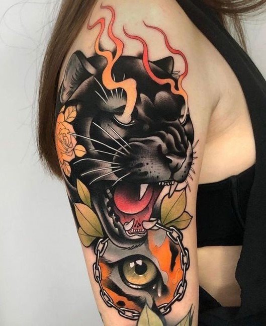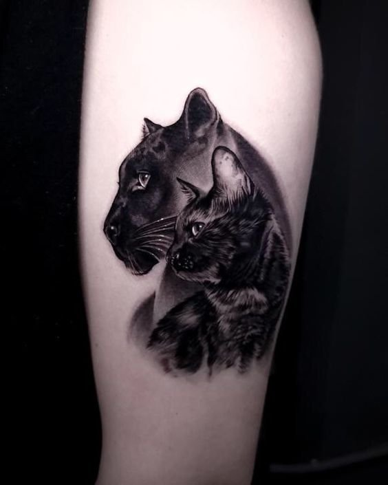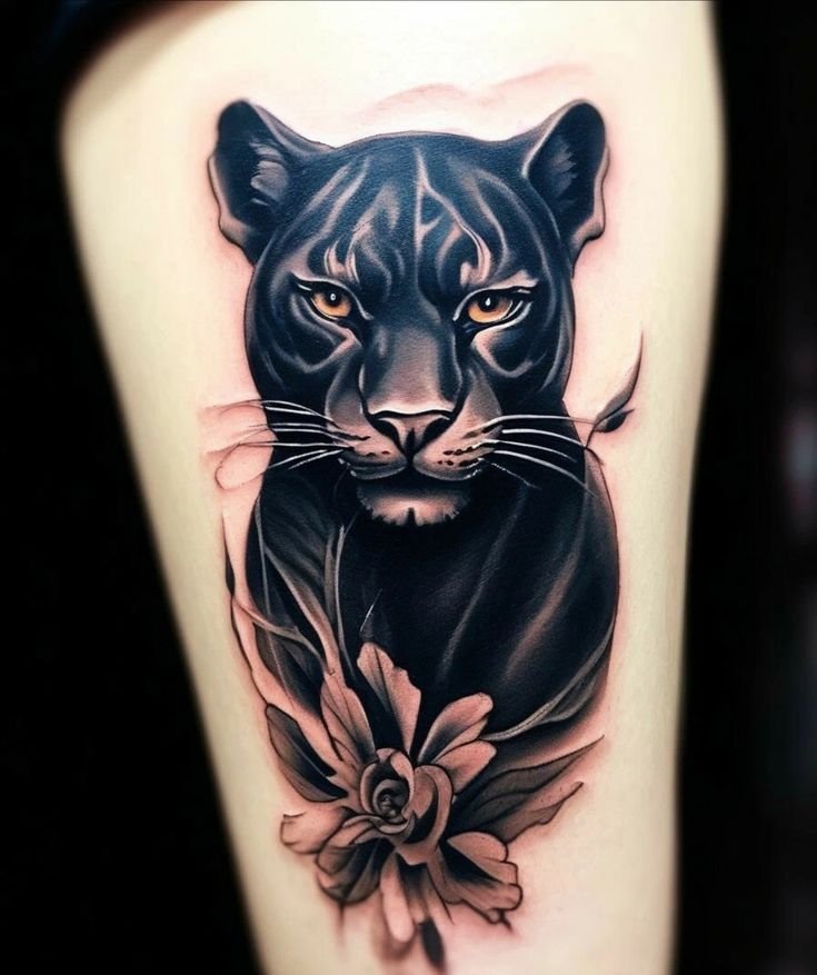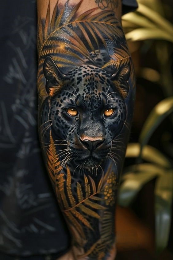 The panther’s graceful movements make it seem as if it’s gliding through the air. Its flexibility and poise embody sensuality, elegance, and beauty. A panther tattoo can emphasize self-confidence and appeal, adding a touch of refinement. - Intuition and Protection