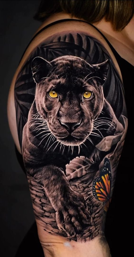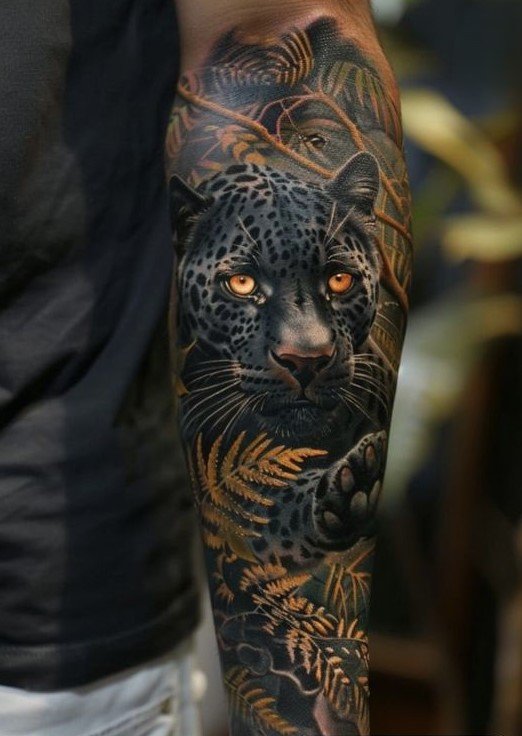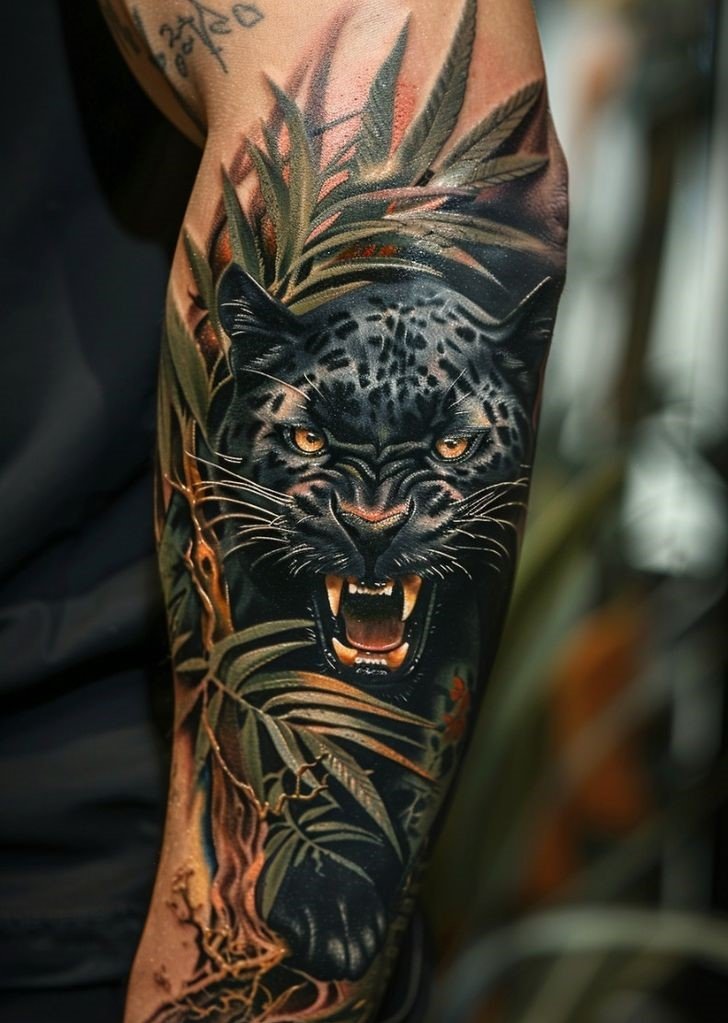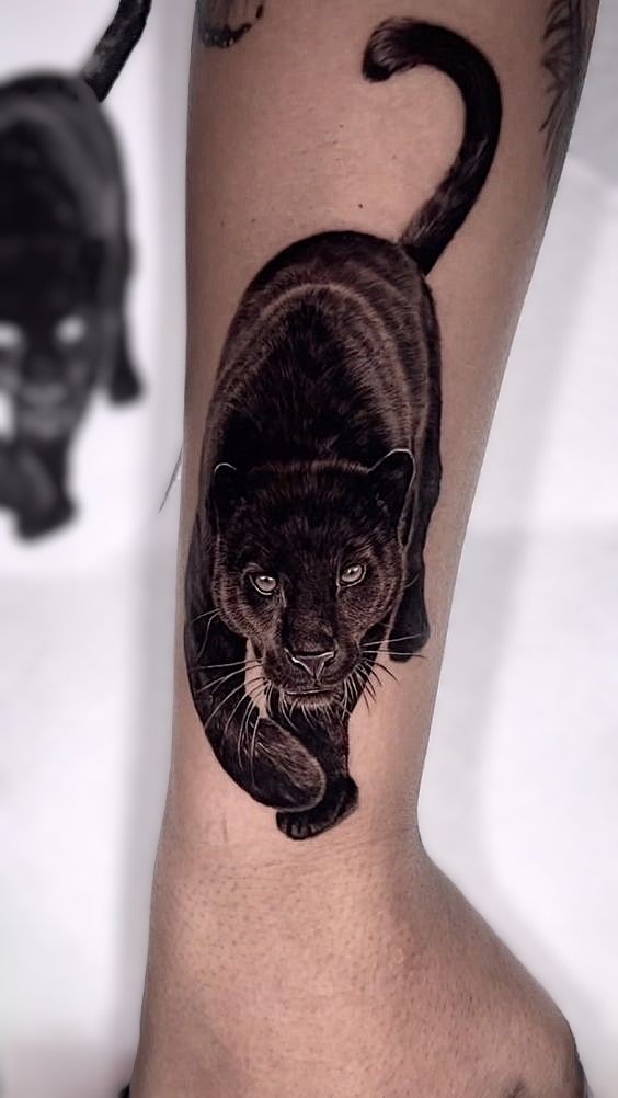 - Panther in Motion: A panther in mid-leap or at the moment of attack symbolizes determination and forward momentum. This tattoo looks dynamic and conveys the predator’s energy.