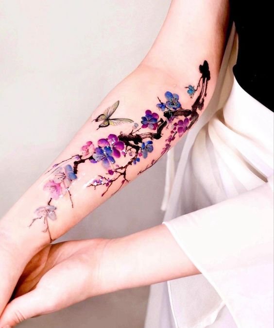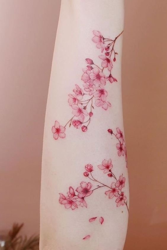 Tattoos with sakura can be executed in various styles, from traditional Japanese irezumi to modern graphic and watercolor techniques.