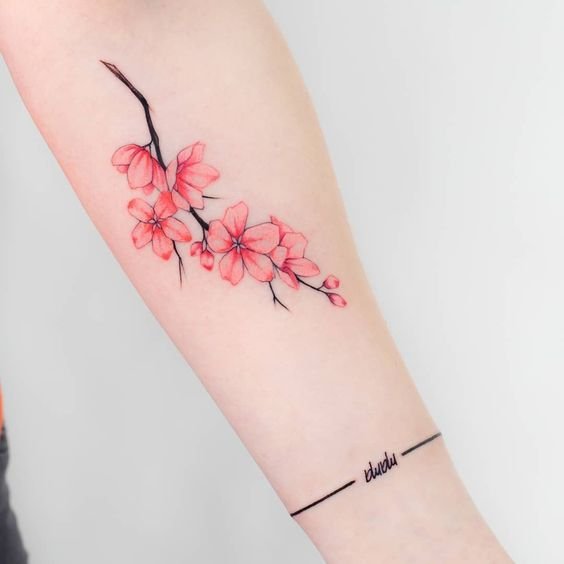 A tattoo depicting a sakura flower is not just a bright and beautiful body decoration.