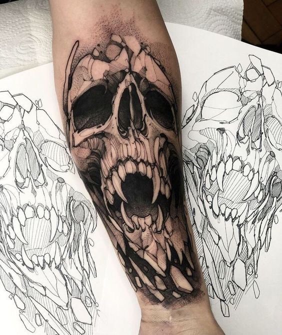 Skull tattoo sketches can be performed in different shapes and styles. Some prefer classical skull representations that are realistic and detailed, while others prefer abstract or stylized variants. A variety of styles, including traditional, new school, realism, graphic and many others, allows everyone to find a unique and individual design.