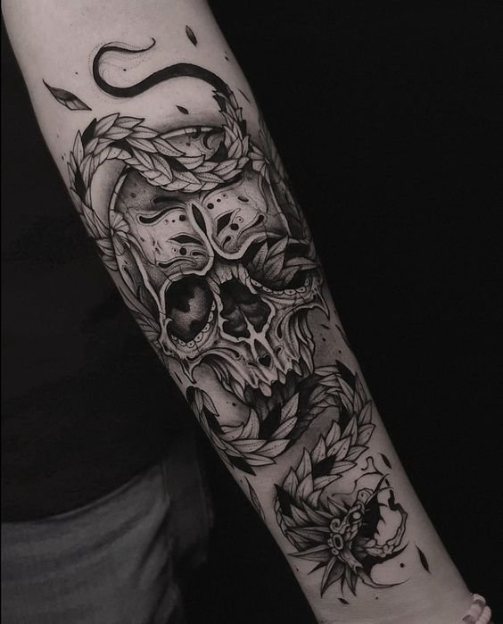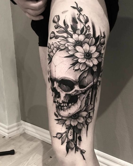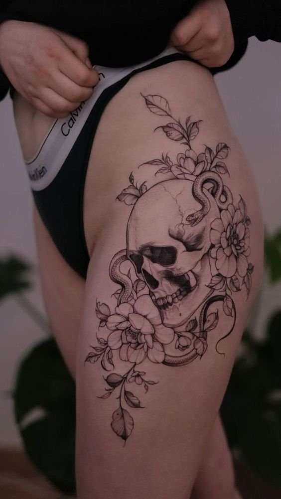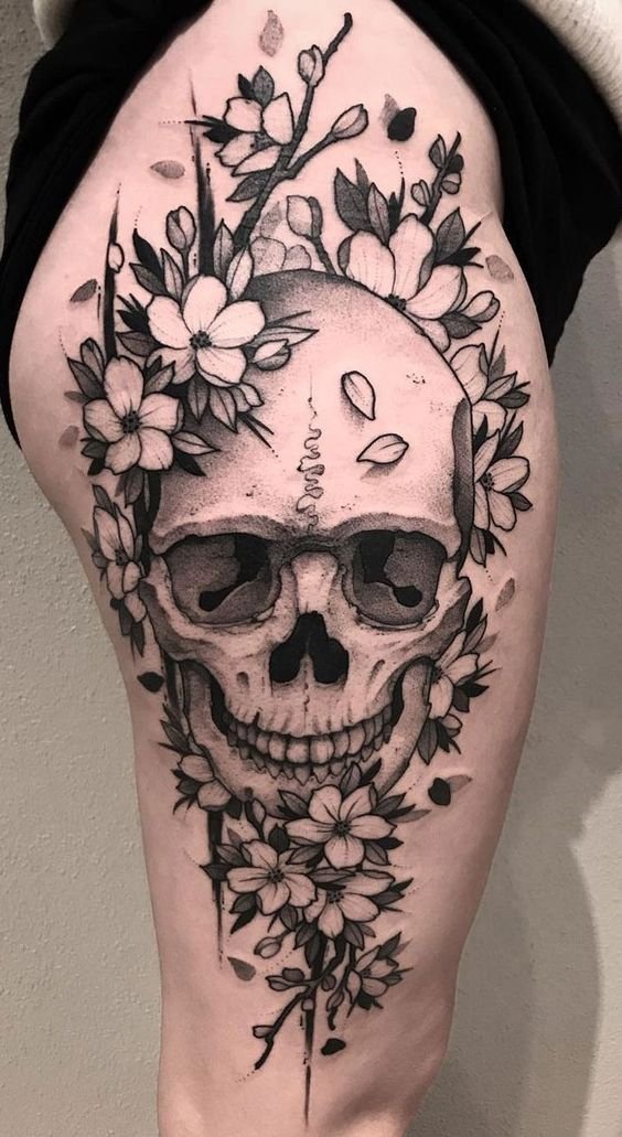 The symbolism of the skull may vary depending on the interpretation. For some people, the skull tattoo is a reminder of the mortality and value of every moment of life. The tattoo can symbolize accepting death as a natural part of the life cycle and opening up new possibilities as a result of this awareness.
