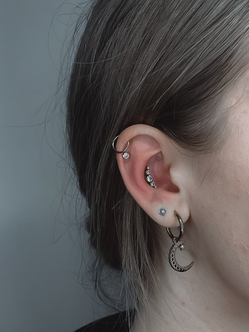 Wanneer het tijd is voor mijn procedures, schakelt mijn focus over naar mijn rol als piercer. Elke ontmoeting is bijzonder voor mij. Ik hou van dat moment van vertrouwen: iemand neemt plaats in de stoel en ik weet dat ik alles zo zorgvuldig, steriel en pijnloos mogelijk ga doen. En ja, ik verheug me altijd samen met de klant wanneer hij of zij het resultaat in de spiegel ziet — stralende ogen zijn goud waard.