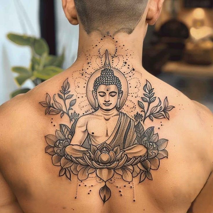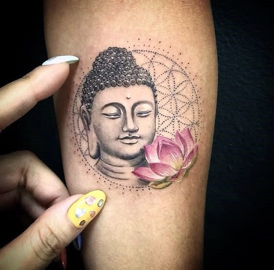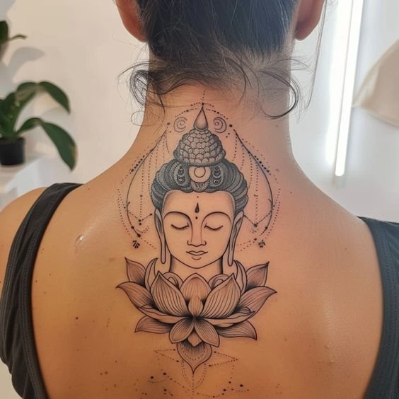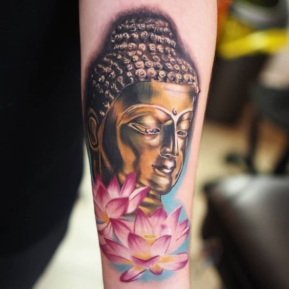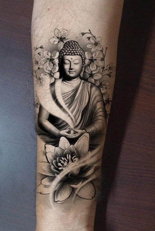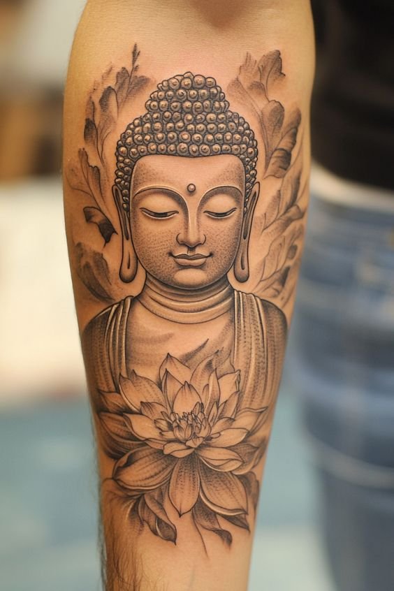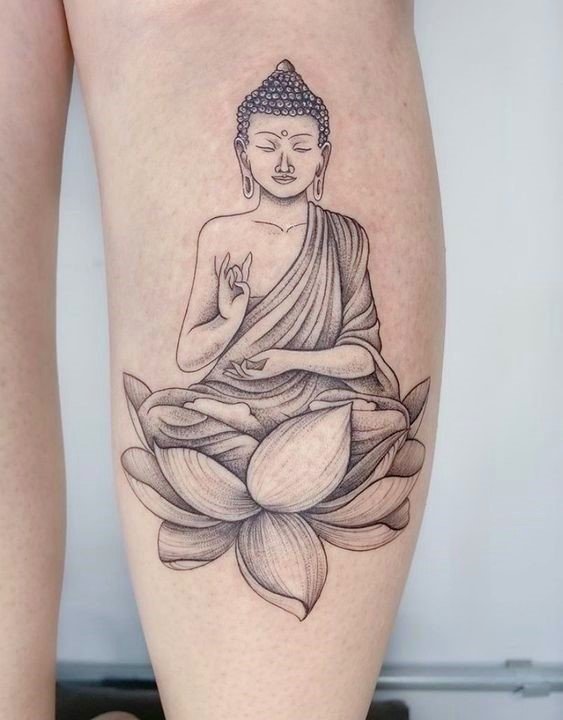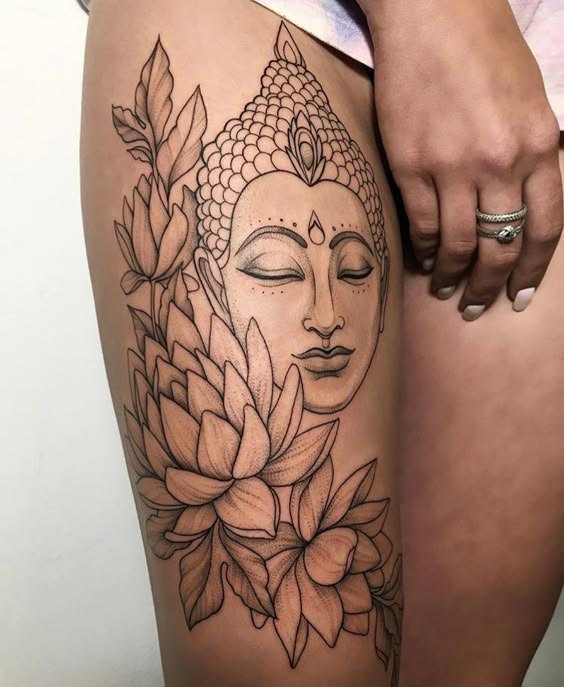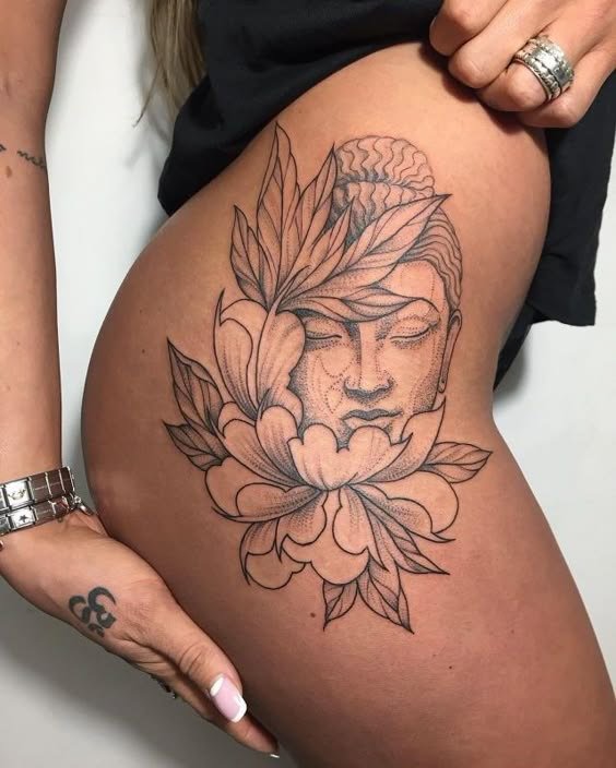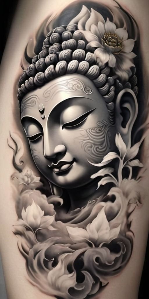 - Boeddha met lotusbloemen: De lotusbloem is een belangrijk symbool in het boeddhisme, dat zuiverheid en spiritueel ontwaken vertegenwoordigt. Een Boeddha-tattoo met een lotusbloem benadrukt het idee van spirituele groei en verlichting.