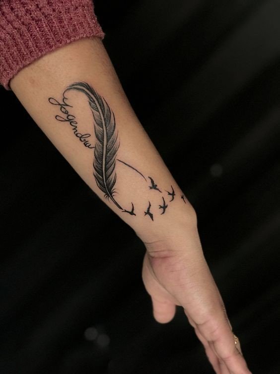 - Infinity met vogels - een symbool van liefde voor vrijheid, streven naar nieuwe horizonten en voortdurende beweging vooruit.