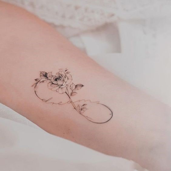 Infinity Tattoo ziet er organisch uit op elk deel van het lichaam, maar vooral op de pols ziet het er indrukwekkend uit. Verfijnde miniatuur afbeeldingen op de vingers, achter het oor, op de hals benadrukken individualiteit, zorgen voor stijl en elegantie.