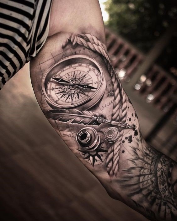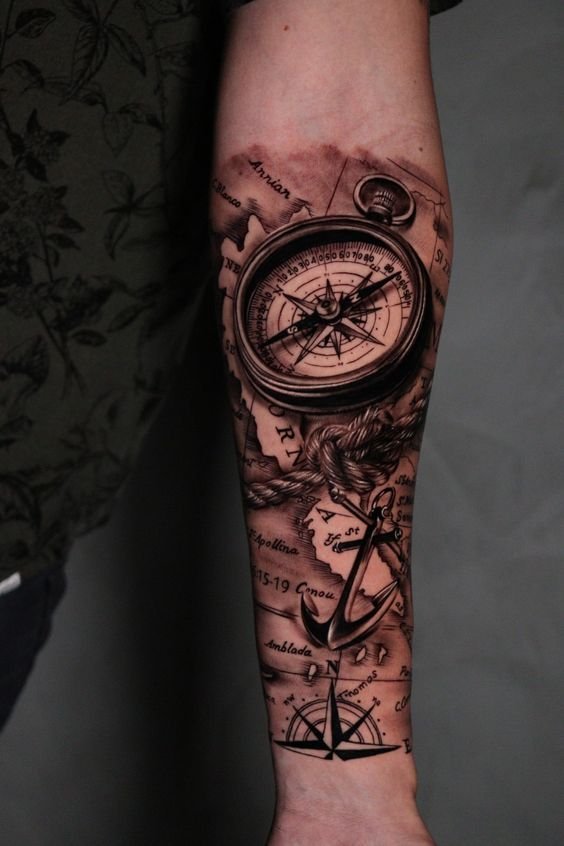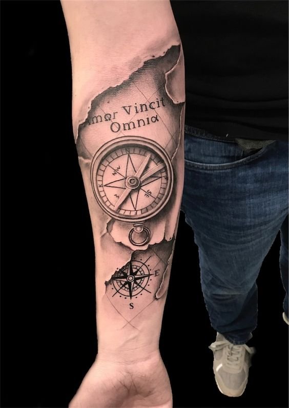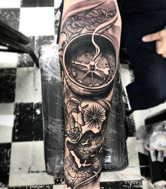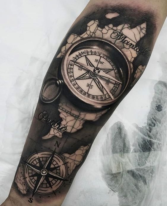 Tattoo met kompas en zijn betekenissen