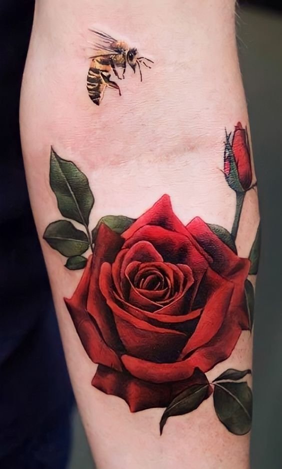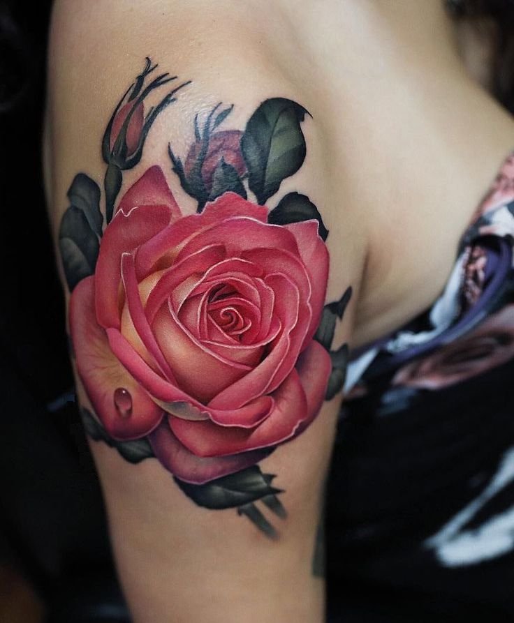 - Realisme: Voor diegenen die streven naar maximale details en schilderachtigheid, is realisme de perfecte stijl. Zo'n tatoeage roos verbaast met zijn realistische schoonheid.
