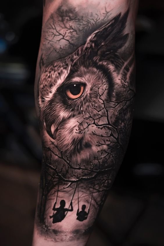 - Bescherming en geluk: In sommige culturen gelooft men dat uilen beschermen tegen narigheid en geluk brengen. Een dergelijke tatoeage kan dienen als een talisman of amulet die bescherming biedt tegen negatieve invloeden.