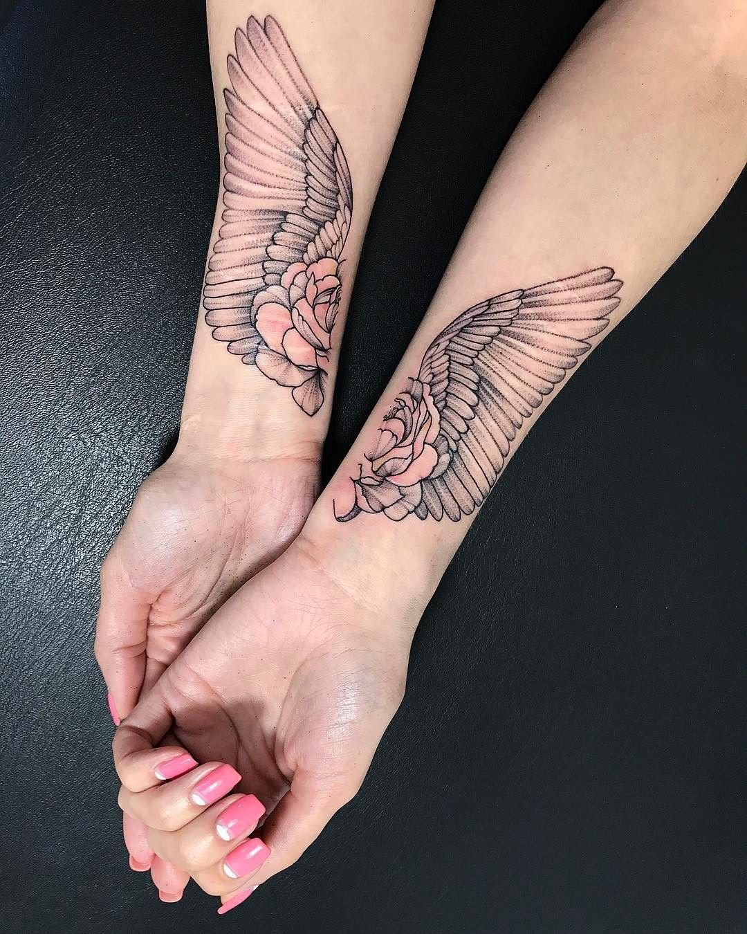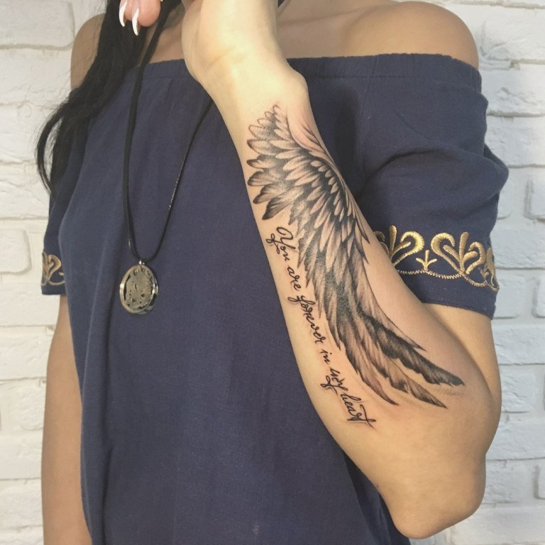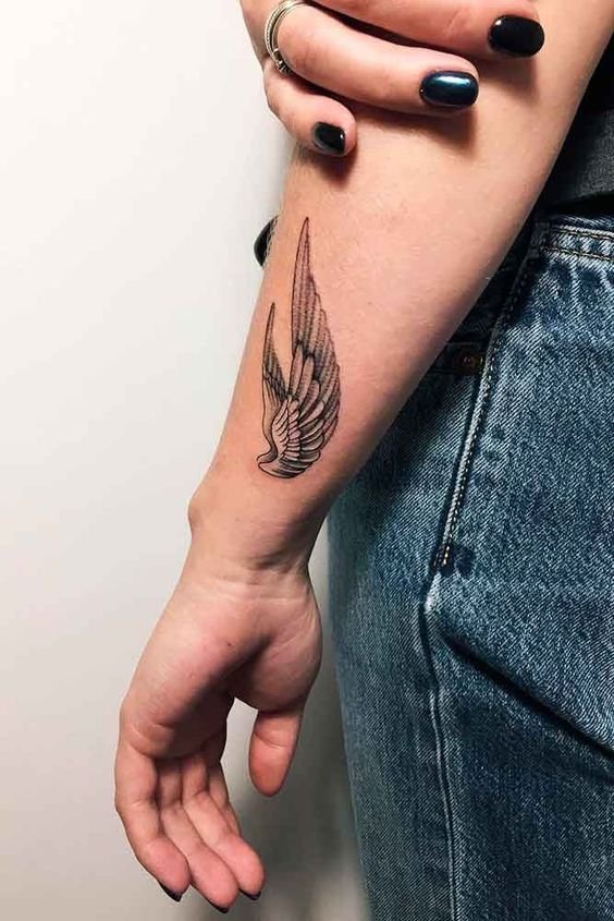 - Op de polsen: Kleine vleugels op de polsen symboliseren lichtheid, het streven naar vrijheid en de wens om boven de dagelijkse routine uit te stijgen.