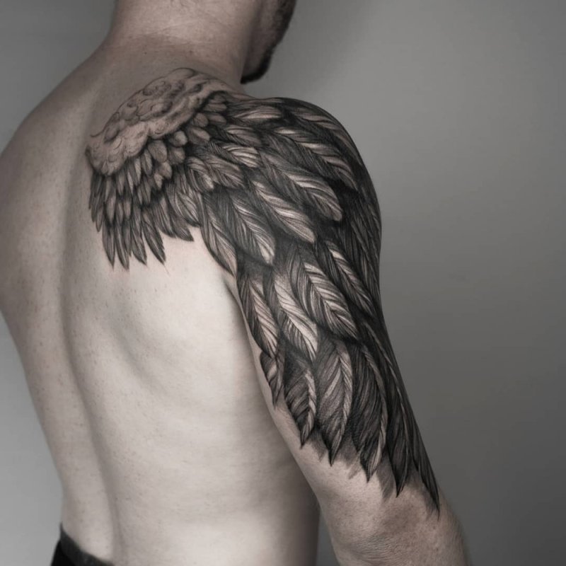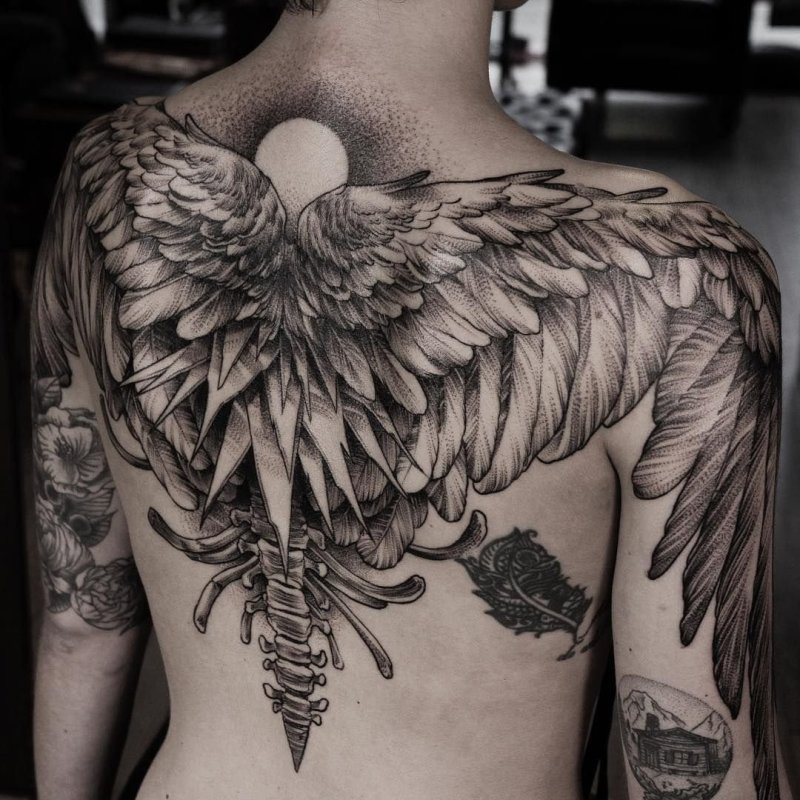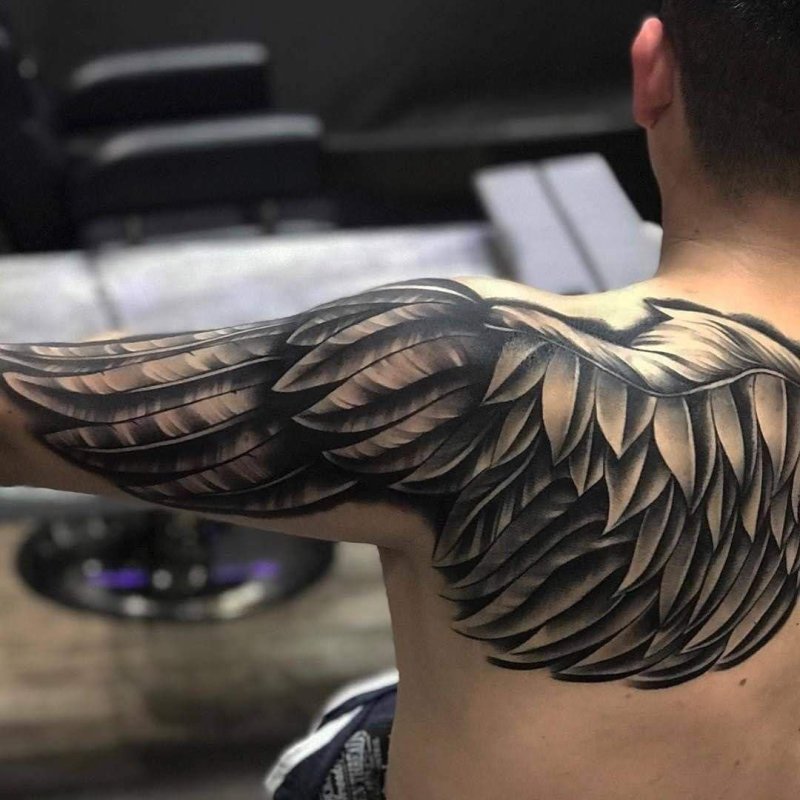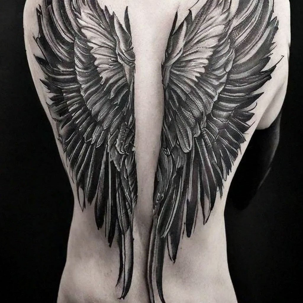 - Op de schouderbladen: Vleugels op de schouderbladen kunnen eruitzien alsof ze op elk moment klaar zijn om uit te slaan voor een vlucht, wat kracht en bescherming benadrukt.