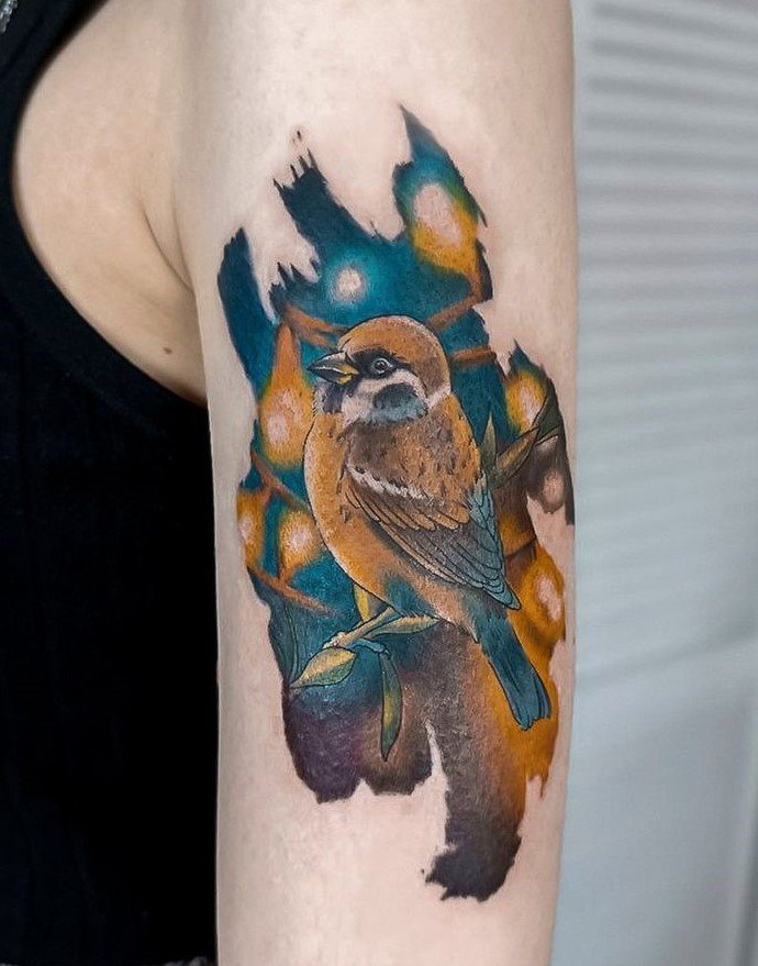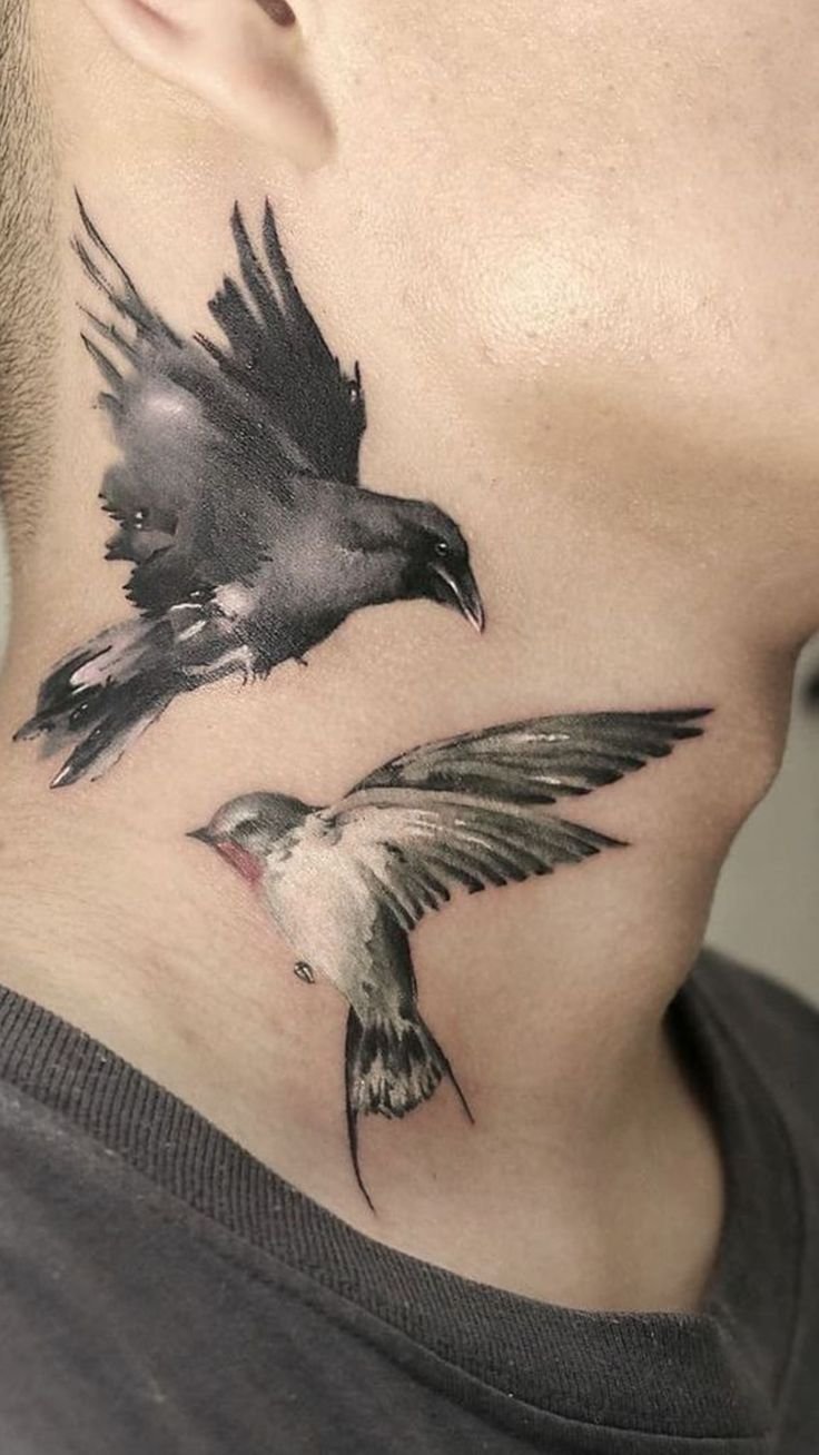 - Aquarelstijl: heldere aquareltinten kunnen een vogeltattoo lichtheid en gratie geven. Deze stijl is perfect voor zwaluwen of feniksen.